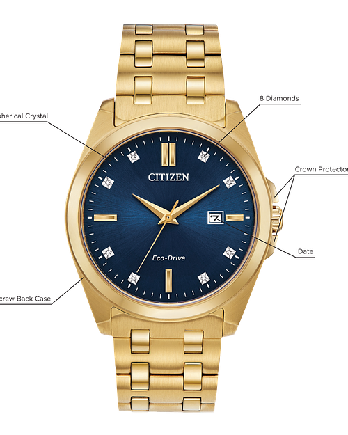 Source : www.shopify.comCitizen Corso Eco Drive Blue Dial Gold Stainless Steel Watch | CITIZEN